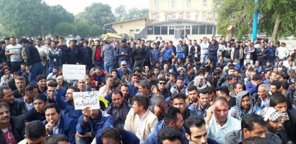 Protesta de trabajadores municipales de Bushehr en los levantamientos de 2020