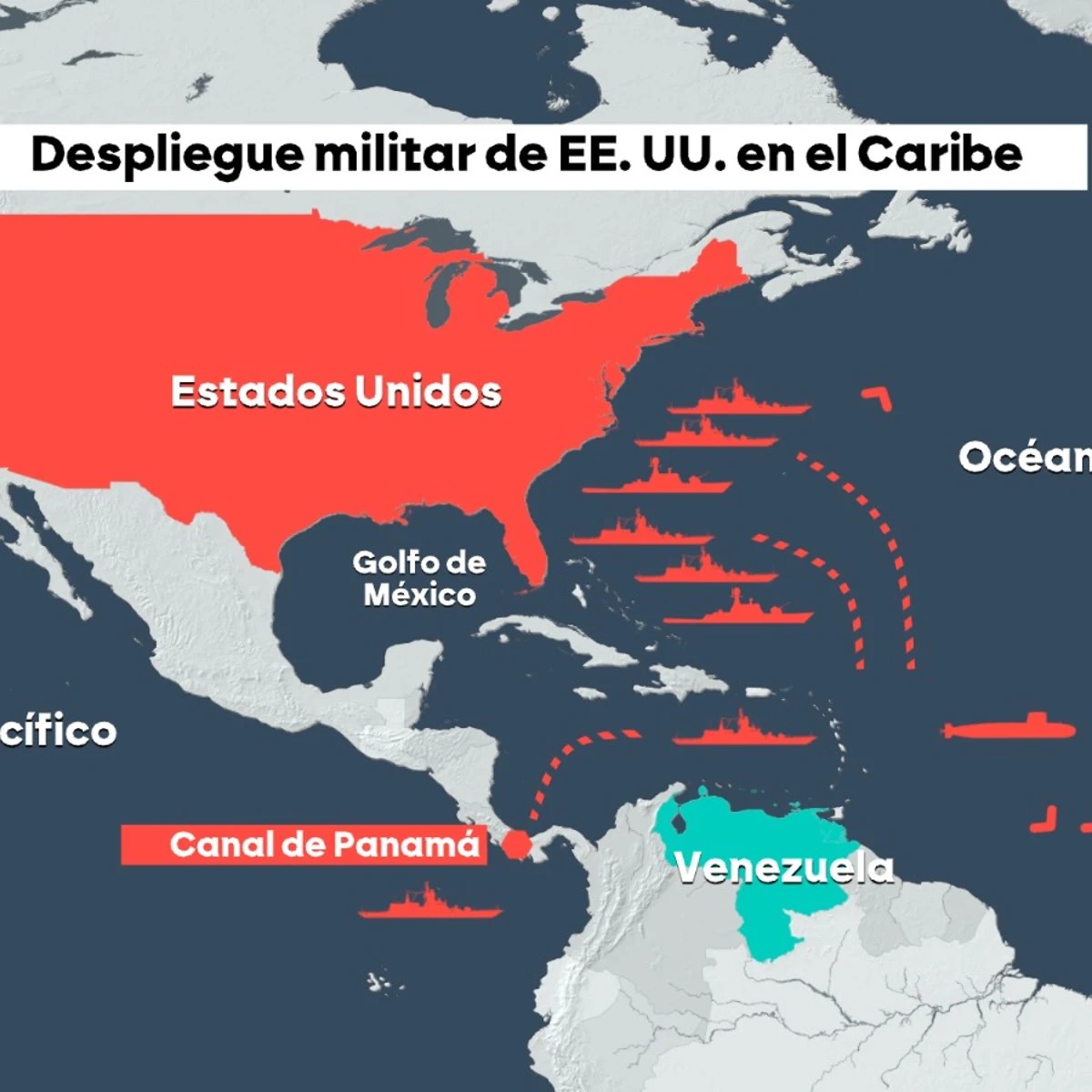 A fines de agosto Trump, con la excusa de “enfrentar el narcotráfico”, desde el Pentágono ordenó desplegar más de 4 mil efectivos militares, 8 buques de guerra equipados con misiles, y 1 submarino con propulsión nuclear y aviones de vigilancia, sobre el mar del Caribe, así mismo aterrizaron 5 cazas F-35 y 1 aeronave logística Boeing C-5 que están en Puerto Rico, a los que se sumaron 10 cazas F-35 más en dicho país. Esta ofensiva militar de los yanquis sobre Venezuela es para quedarse con la reserva de petróleo que es la más grande del mundo, incluso cinco veces más que la de EEUU.